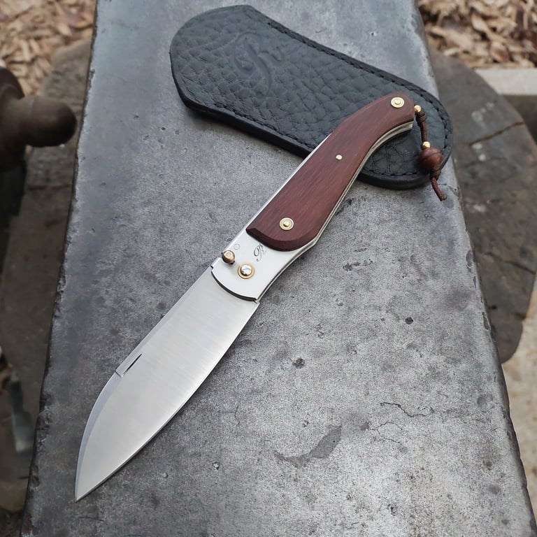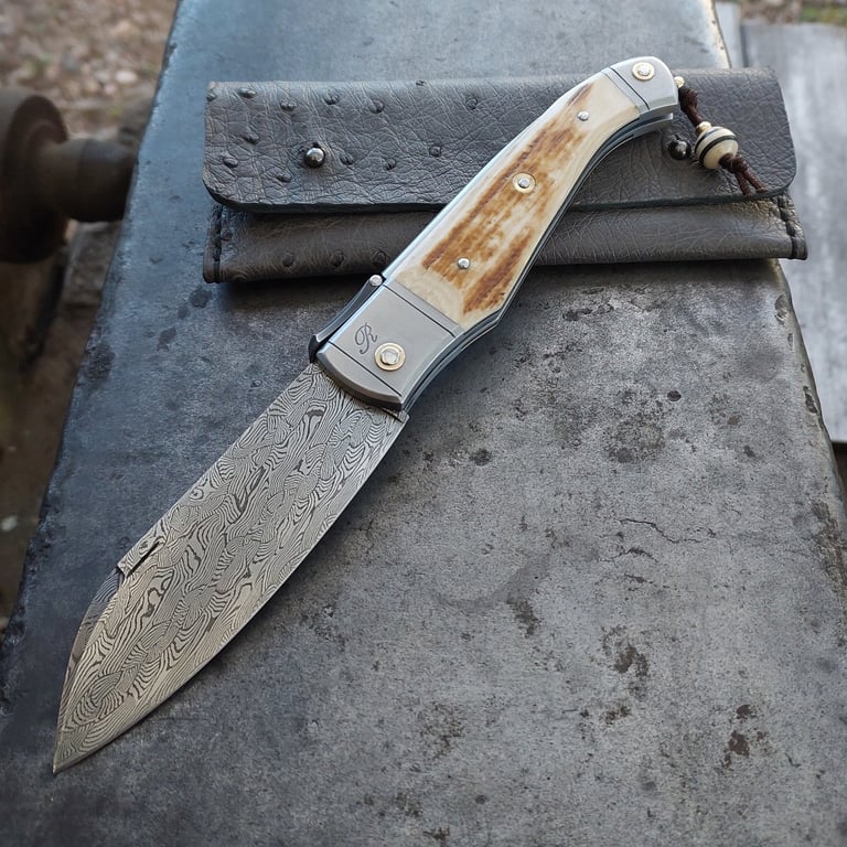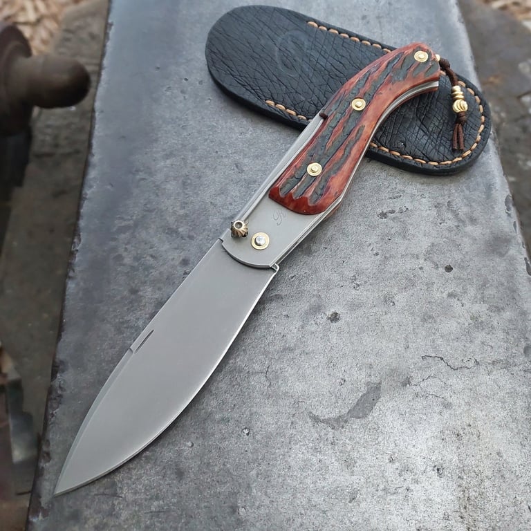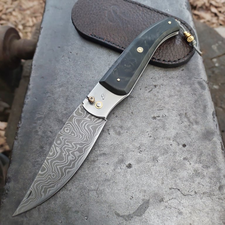 Chaque couteau est une pièce unique, réalisée entièrement à la main. Je travaille avec passion pour fabriquer des couteaux pliants d'exception. mon processus de création commence toujours par un dessin papier et la préparation des matériaux comme la forge des aciers damas et la stabilisation des bois, puis je passe à la conception et à la fabrication du couteau. Chaque pièces est entièrement fabriquée de A à Z à l'atelier