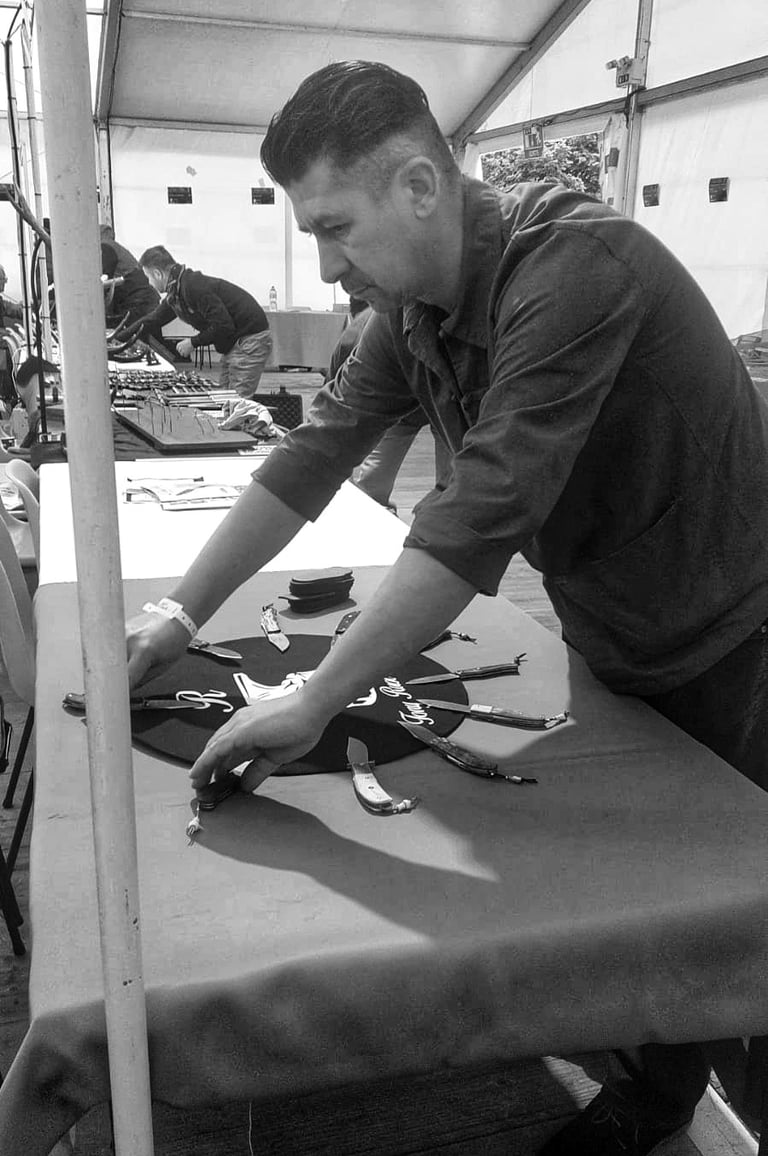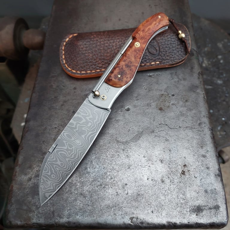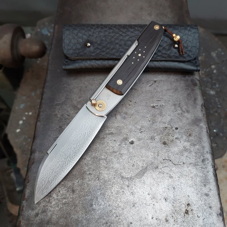 Chaque couteau est une pièce unique, réalisée entièrement à la main. Je travaille avec passion pour fabriquer des couteaux pliants d'exception. mon processus de création commence toujours par un dessin papier et la préparation des matériaux comme la forge des aciers damas et la stabilisation des bois, puis je passe à la conception et à la fabrication du couteau. Chaque pièces est entièrement fabriquée de A à Z à l'atelier